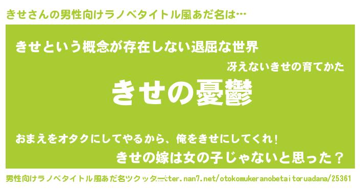 | 女子向けラノベタイトル風あだ名 | 『きせ姫と円卓の騎士』『きせ様がみてる』 |