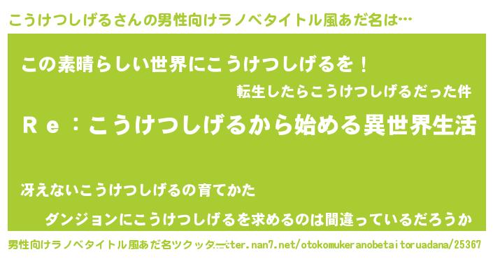 | 意味不明あだ名 | 『自称こうけつしげる』 |