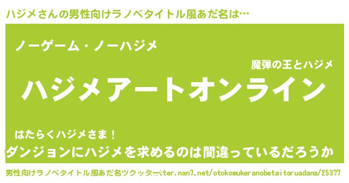 | 女子向けラノベタイトル風あだ名 | 『ハジメ姫と円卓の騎士』 |