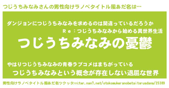 つじうちみなみさんの男性向けラノベタイトル風あだ名をツクッター!