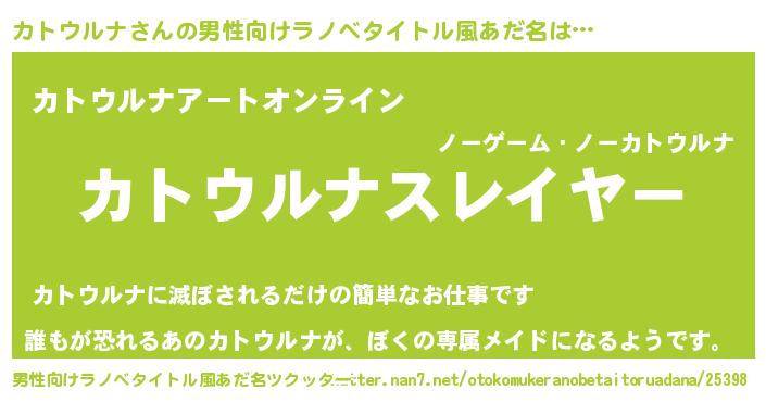 | 胡散臭い通販商品みたいなあだ名 | 『必ず成功するブレスレット…その名も「カトウルナ」』 |