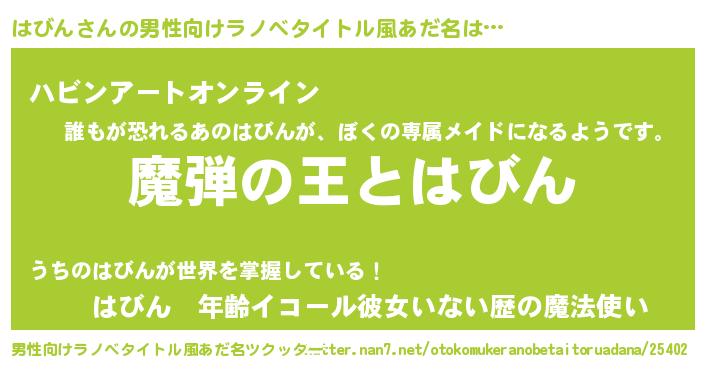 | ヘコむあだ名 | 『はびにゅー』『はびん(苦笑)』 |