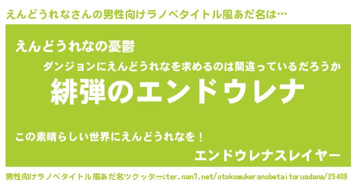 | 女子向けラノベタイトル風あだ名 | 『シンデレラえんどうれな家の靴箱館』 |