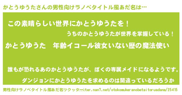 | 女子向けラノベタイトル風あだ名 | 『かとうゆうたの玉の輿計画!』 |