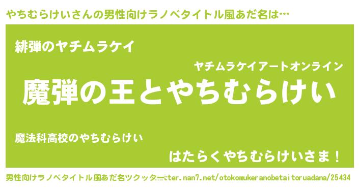 | 女子向けラノベタイトル風あだ名 | 『やちむらけいが死なない童話 林檎のやちむらけいの診療簿』 |