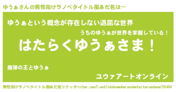 ゆうぁさんの男性向けラノベタイトル風あだ名をツクッター!