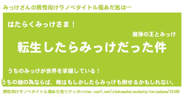 みっけさんの男性向けラノベタイトル風あだ名をツクッター!
