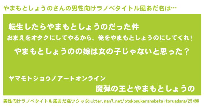 | 胡散臭い通販商品みたいなあだ名 | 『全米が絶賛したサプリメント…その名も「やまもとしょうの」』 |