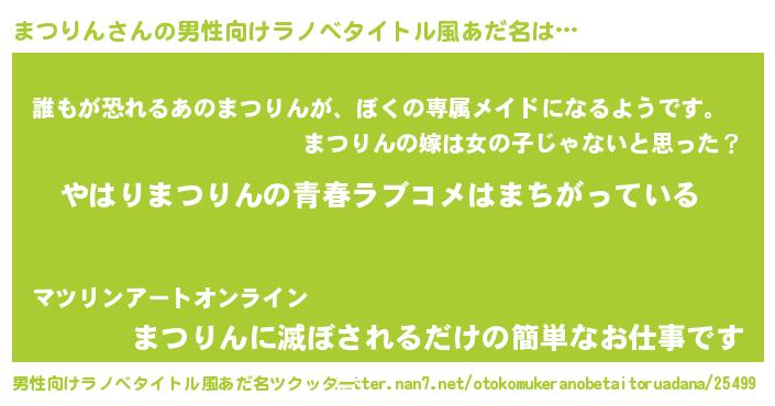 | ファンタジー風あだ名 | 『エターナルマツリンー』『マツフェル』 |