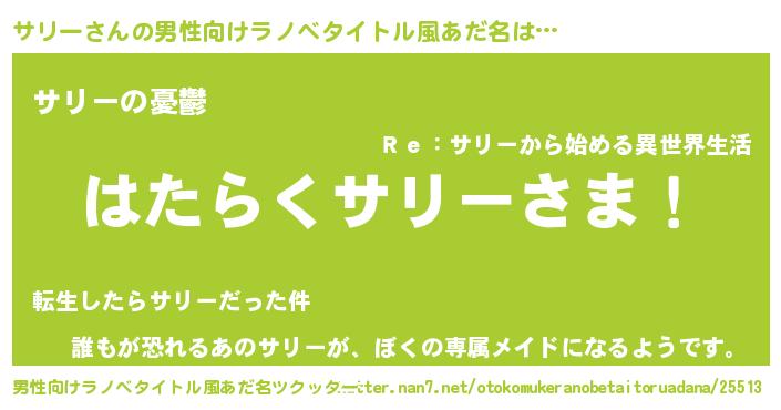 | ファンタジー風あだ名 | 『サリフェル』『サリディッシュ』 |