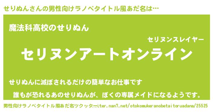 | 女子向けラノベタイトル風あだ名 | 『せりぬん姫と円卓の騎士』 |