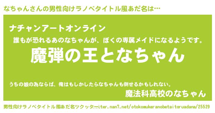 | 女子向けラノベタイトル風あだ名 | 『なちゃんが死なない童話 林檎のなちゃんの診療簿』 |