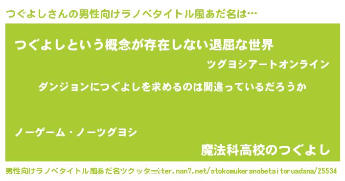 | 女子向けラノベタイトル風あだ名 | 『つぐよしの卵を拾いまして』 |
