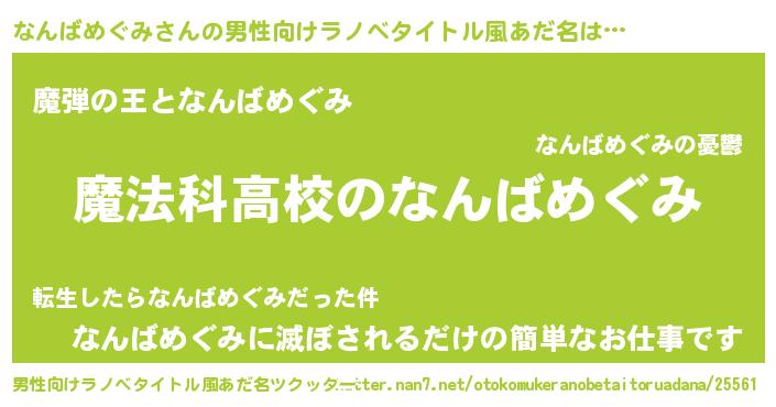 | 女子向けラノベタイトル風あだ名 | 『なんばめぐみなんてお断りですっ。』 |