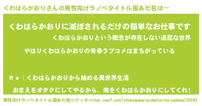 | 女子向けラノベタイトル風あだ名 | 『くわはらかおりの雑貨屋さん』 |