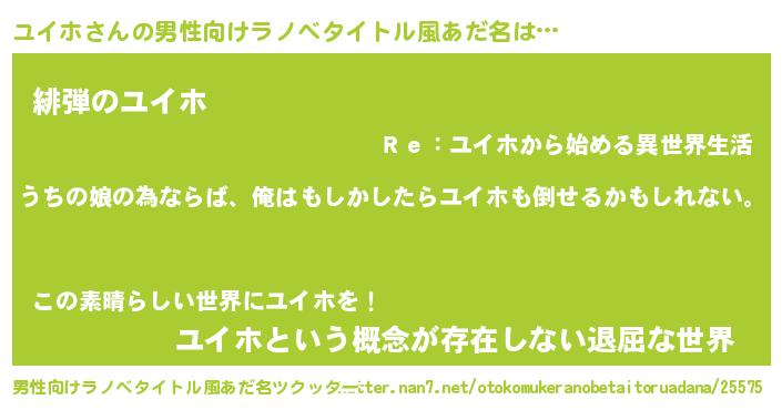 | 女子向けラノベタイトル風あだ名 | 『ユイホ伯爵の花嫁』『闇のユイホ』 |