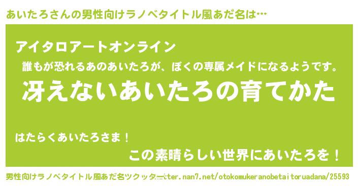 | 女子向けラノベタイトル風あだ名 | 『シンデレラあいたろ家の靴箱館』 |