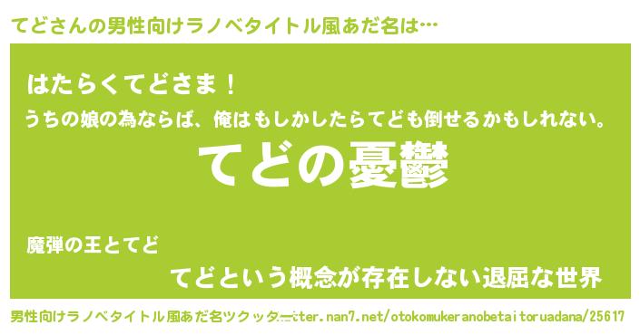 | 女子向けラノベタイトル風あだ名 | 『(仮)てどのやんごとなき事情』 |