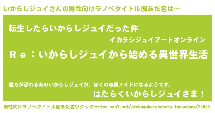 | 意味不明あだ名 | 『自称いからしジュイ』 |