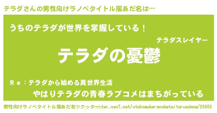 | 女子向けラノベタイトル風あだ名 | 『テラダ姫と円卓の騎士』『闇のテラダ』 |