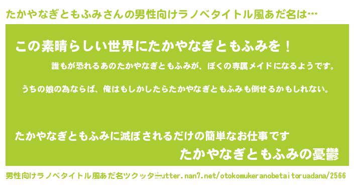 | 肩書あだ名 | 『たかやなぎともふみ大統領』 |
