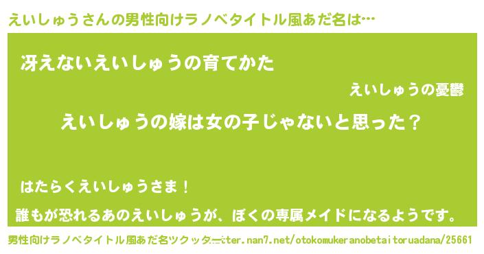 | 女子向けラノベタイトル風あだ名 | 『えいしゅう様がみてる』 |