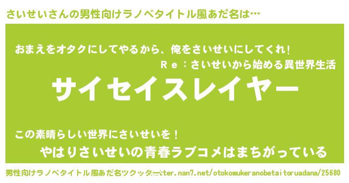 | ヒーロー風カッコイイあだ名 | 『正義の使者さいせい』『仮面サイダー』 |