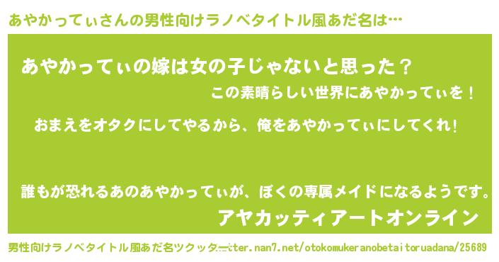| 女子向けラノベタイトル風あだ名 | 『あやかってぃ恋絵巻』 |
