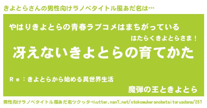 | ヒーロー風カッコイイあだ名 | 『ウルトラきよとらマン』『仮面キヨダー』 |