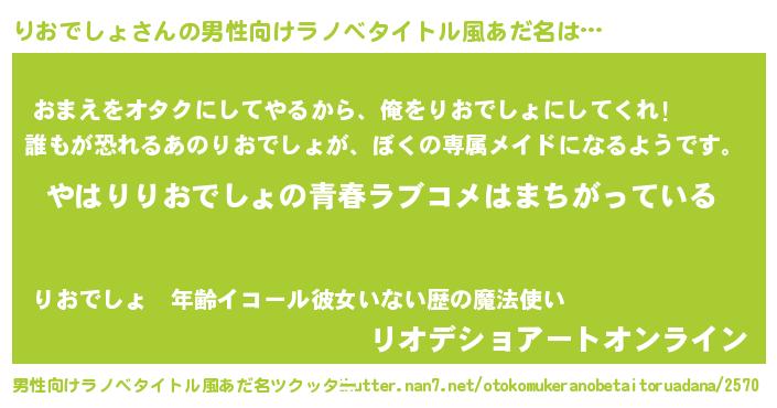 | 胡散臭い通販商品みたいなあだ名 | 『幸せが訪れる高級そうな絵画…その名も「りおでしょ」』 |
