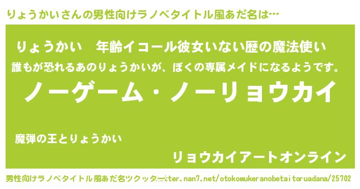 | 女子向けラノベタイトル風あだ名 | 『りょうかい恋絵巻』 |
