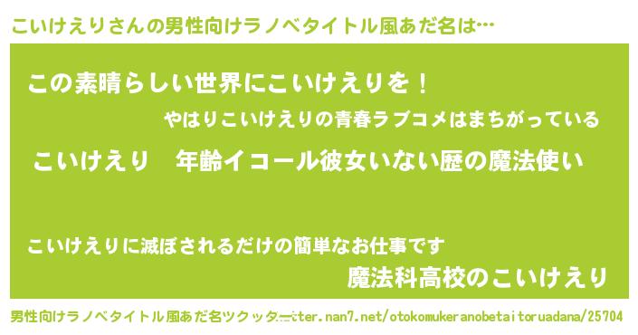| 胡散臭い通販商品みたいなあだ名 | 『あなたにだけ特別に提供する100年もののヴィンテージワイン…その名も「こいけえり」』 |