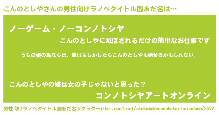| 女子向けラノベタイトル風あだ名 | 『こんのとしやの婚約者』 |