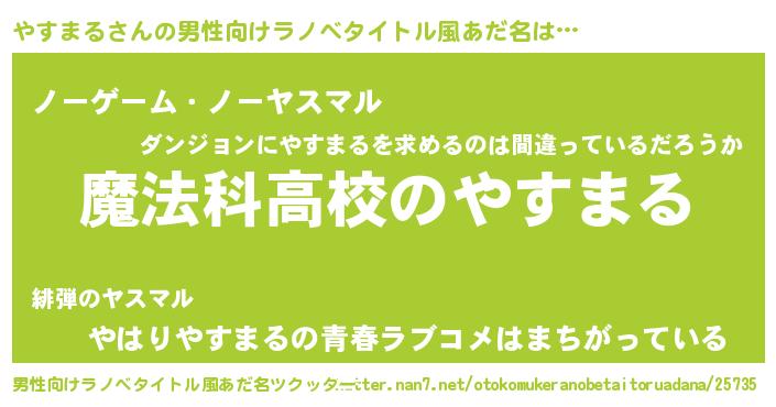 | 意味不明あだ名 | 『自称やすまる』『やすまるフォーエバー』 |