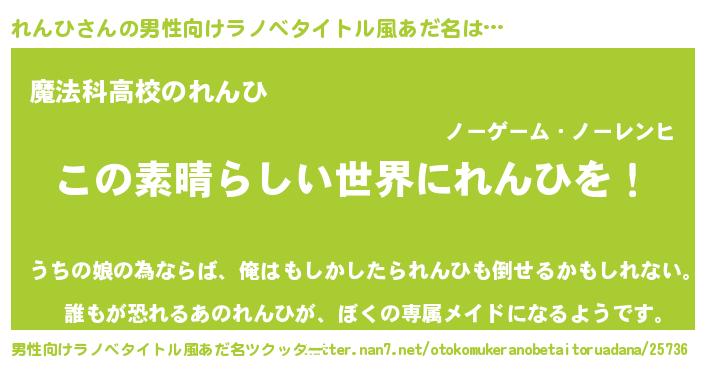 | 女子向けラノベタイトル風あだ名 | 『悪役れんひに転生したようですが、知った事ではありません』 |