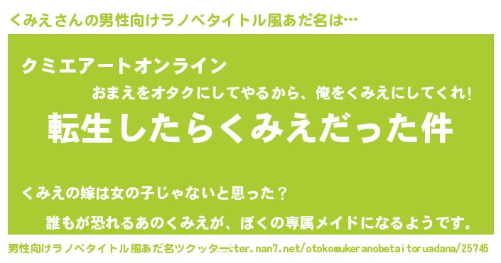 | ヘコむあだ名 | 『くみにー』『くみえ(遠い目)』 |