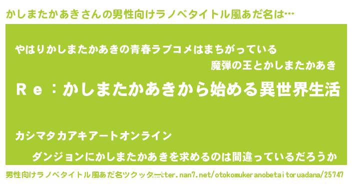 | 女子向けラノベタイトル風あだ名 | 『闇のかしまたかあき』 |