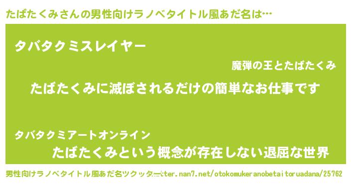 | 胡散臭い通販商品みたいなあだ名 | 『来世でも幸せになれる健康食品…その名も「たばたくみ」』 |
