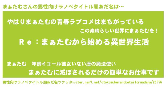| ヒーロー風カッコイイあだ名 | 『サイバー戦士マァタム』『仮面マァダー』 |