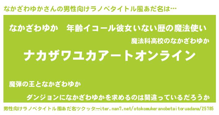 | ヒーロー風カッコイイあだ名 | 『スーパーナカザワユカ』『炎刃騎士ナカ』 |