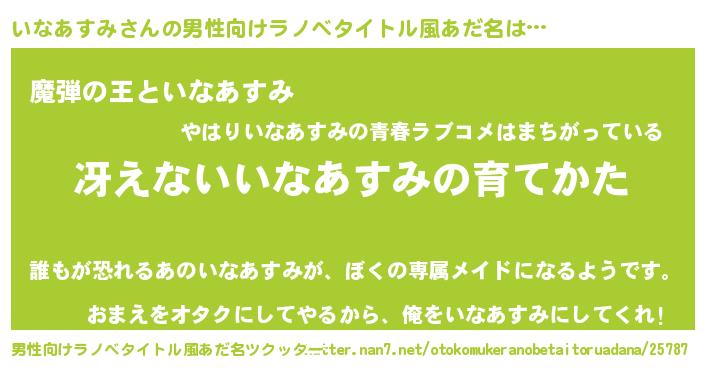 | 欧米人風あだ名 | 『いなあすみ・ステッグマイヤー』 |