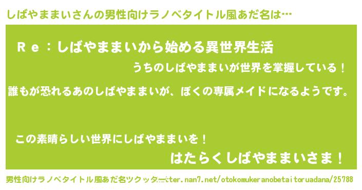 | ヒーロー風カッコイイあだ名 | 『ネオシバヤママイ』『仮面シバダー』 |