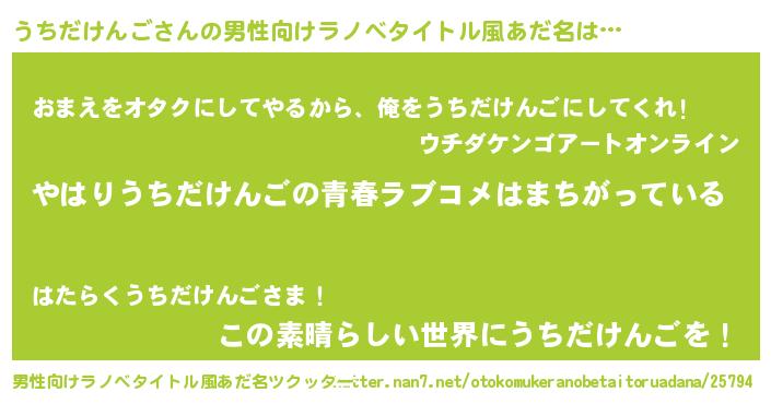 | 女子向けラノベタイトル風あだ名 | 『うちだけんごの雑貨屋さん』 |
