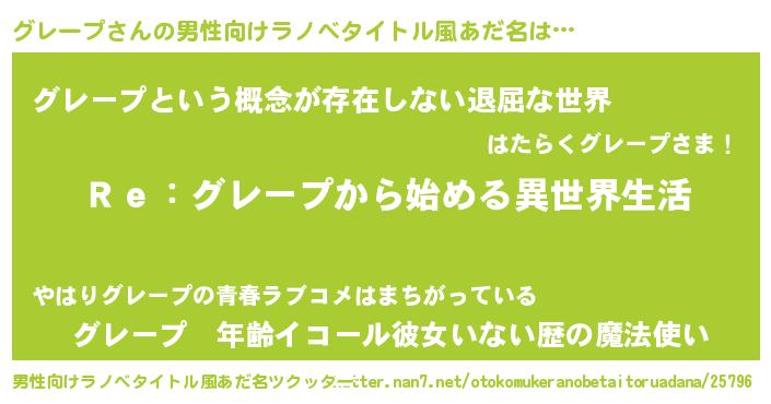 | 意味不明あだ名 | 『自称グレープ』『永久保存グレープ』 |