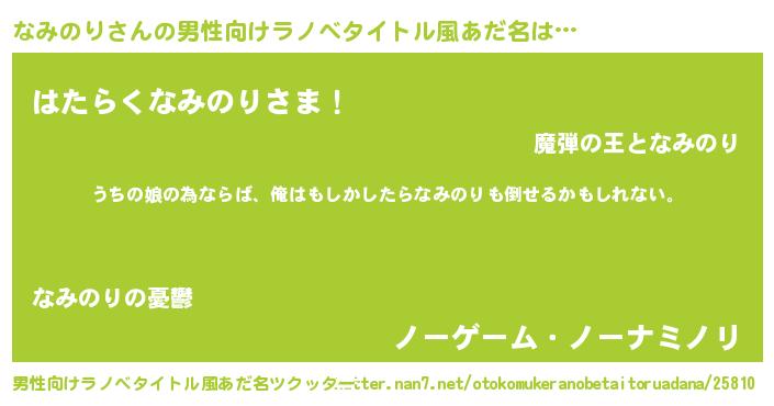 | ファンタジー風あだ名 | 『エターナルナミノリー』『クインナット』 |