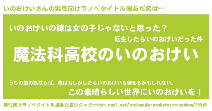 | 女子向けラノベタイトル風あだ名 | 『いのおけいアンティーク』 |