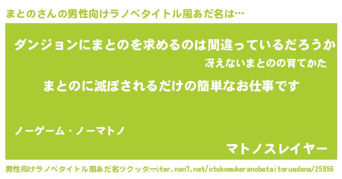 | 意味不明あだ名 | 『とにかく怪しいまとの』 |