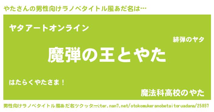 | 意味不明あだ名 | 『住所不定無職やた(39歳)』『ペロリンやた』 |