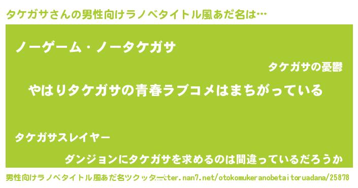 | 女子向けラノベタイトル風あだ名 | 『タケガサの雑貨屋さん』 |