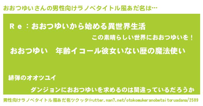 | 意味不明あだ名 | 『ニラ科おおつゆい属』『自称おおつゆい』 |